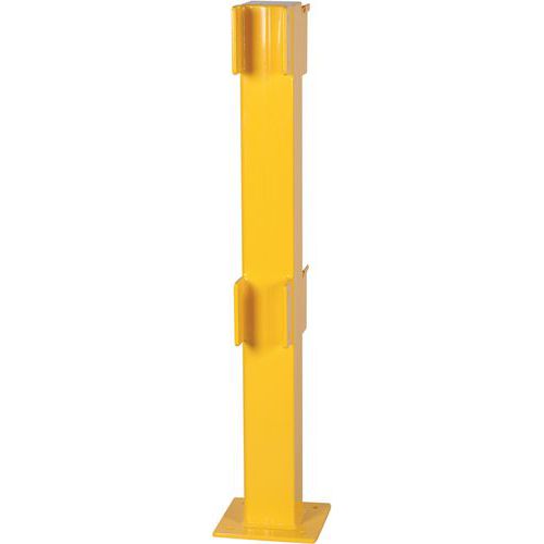 Poteau en acier pour barrière de sécurité, entièrement adaptable à vos locaux. Coloris jaune pour une bonne visibilité. Stabilité garantie grâce à sa fixation au sol par platine. Fabrication en acier galvanisé pour une utilisation en extérieur. Certificat du TÜV. Installation facile.