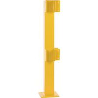 Poteau en acier pour barrière de sécurité, entièrement adaptable à vos locaux.  Coloris jaune pour une bonne visibilité.  Stabilité garantie grâce à sa fixation au sol par platine.  Fabrication en acier galvanisé pour une utilisation en extérieur.  Certificat du TÜV.   Installation facile.