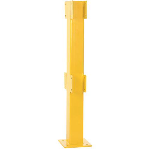 Poteau en acier pour barrière de sécurité, entièrement adaptable à vos locaux. Coloris jaune pour une bonne visibilité. Stabilité garantie grâce à sa fixation au sol par platine. Fabrication en acier galvanisé pour une utilisation en intérieur.# Certificat du TÜV. Installation facile.