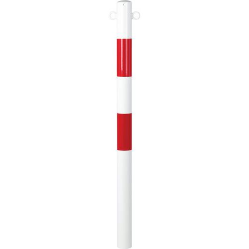 Poteau polyéthylène avec oeillets de fixation pour un accrochage facile de la chaîne fournie.