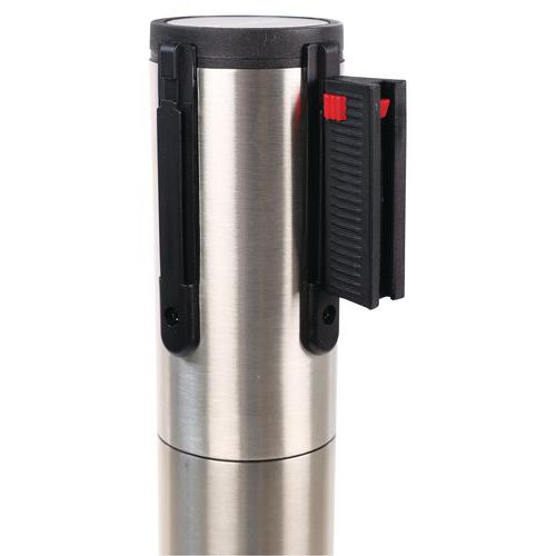 Poteau acier inoxydable à sangle 2 m - Socle à roulettes - Manutan Expert