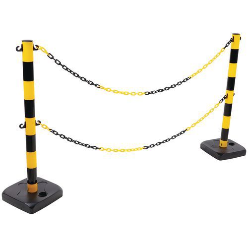 Poteau double chaîne sur socle - Kit 6 poteaux - Manutan Expert Kit poteaux à double chaîne prêt à l'emploi, pour un balisage efficace et économique. Ce produit est conçu pour un usage professionnel. Garantie client : 10 ans