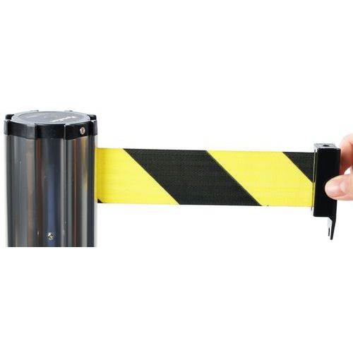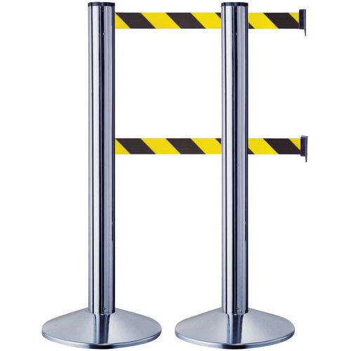 Poteau avec 2 sangles rétractables disposant chacune de 3 points d'accrochage. Remplacement aisé du mécanisme de sangle. Possibilité de raccorder les poteaux entre eux.