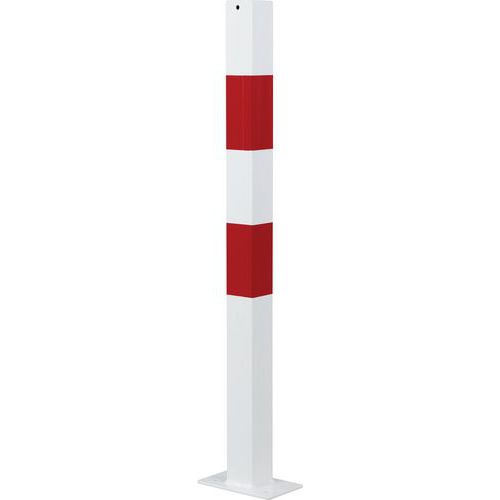 Poteau rond à sceller dans le sol pour délimiter des voies de circulation, chemins piétons ou parkings. Utilisation extérieur possible grâce à sa galvanisation. Bonne visibilité grâce à ses bandes réfléchissantes. Installation facile. Certificat du TÜV.