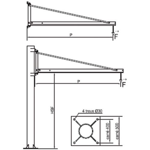 Potence à flèche triangulée sur fût - Force 100 kg