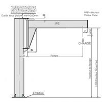 Construction mécano-soudée très robuste. Flèche en fer profilée IPE. Rotation du bras aisée sur bagues auto-lubrifiantes. Rotation 270°. Peinture jaune (RAL 1028). Disponible avec une portée de 2, 3, 4 ou 5 m. Autres portées : nous consulter. Hauteur sous fer limitée à 5 m en standard. Autres dimensions : nous consulter. Poids : selon modèle, nous consulter. Options possibles : ligne d'alimentation électrique, chariot porte-palan, palan électrique ou manuel, peinture spéciale, version mobile déplaçable, interrupteur cadenassable… Fixation sur massif béton par crosses d’ancrage (gabarit et crosses en option) ou fixation sur dalle béton par cheville chimique (en option) avec ou sans semelle de répartition (en option). Mise en place de la potence : prévoir 150 mm de garde sous le plafond. Mise en place et installation : nous consulter. Fabriqué en France Force (kg) : 2000 kg