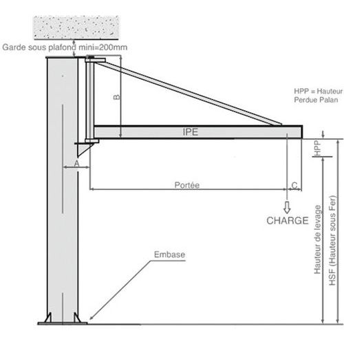 Potence sur colonne à tirant supérieur type ipe 1000 à 2000kg - Huchez