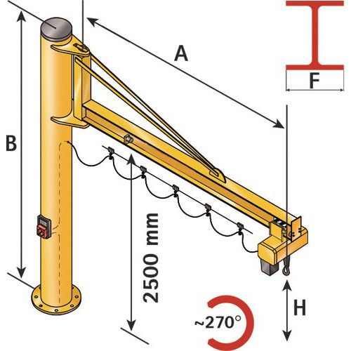 Potence sur fût à flèche triangulée - Force 1000 kg