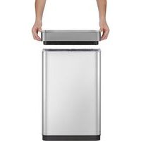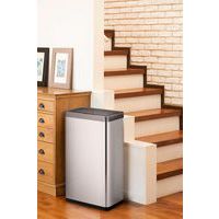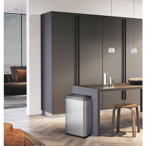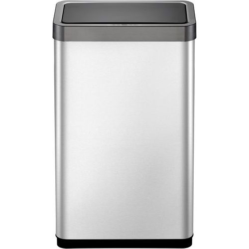 Poubelle à capteur de grande capacité en acier inoxydable brossé avec revêtement anti-traces de doigts.