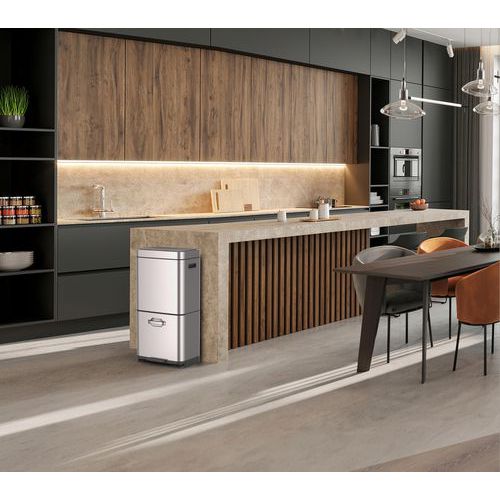 Poubelle superposée à capteur pour un gain de place optimal.