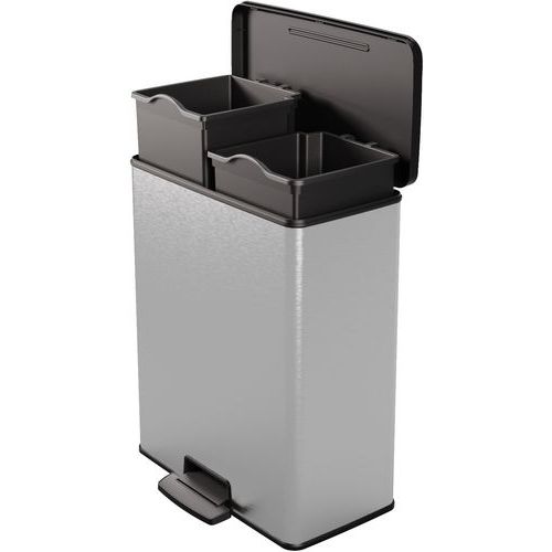 | Intitulé du produit | Poubelle à pédale duo Decobin, Capacité: 52 L, Modèle: VB 129023, Hauteur: 615 mm, Largeur: 486 mm |