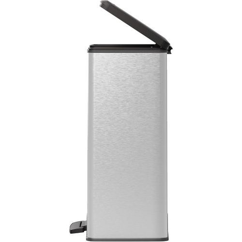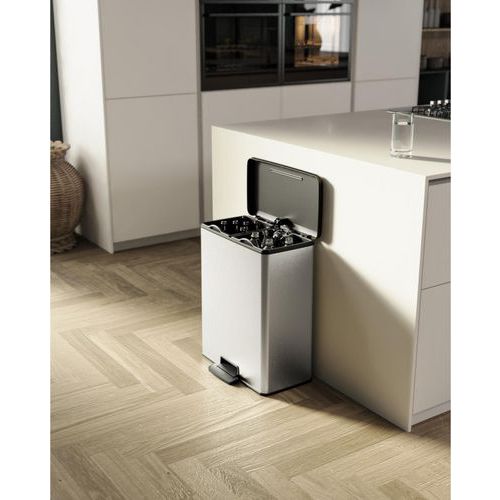 Poubelle à pédale rectangulaire en matière synthétique à l'aspect métal. Fabriquée à partir de 70% de matériaux recyclés. Equipée de deux seaux intérieur (2x26L) en plastique. Facile à nettoyer.