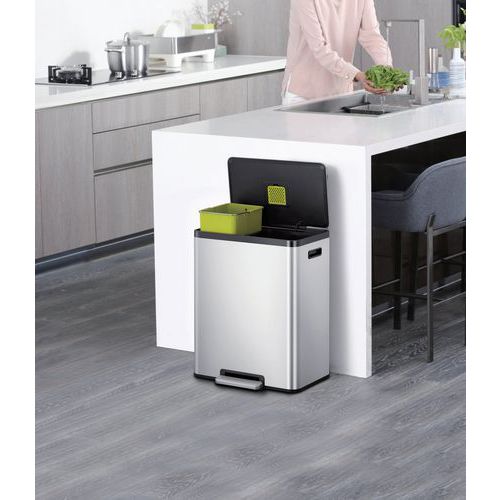 | Intitulé du produit | Poubelle à pédale Ecocasa II Recycling Step Bin 36+24 L, EKO, Capacité: 60 L, Matériau: Inox |