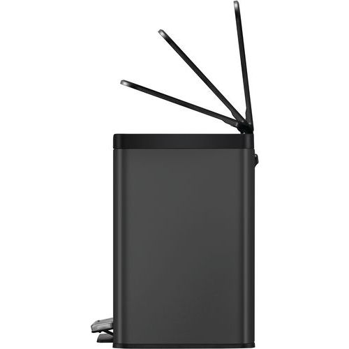 Poubelle à pédale rectangulaire en Inox brossé avec finition anti-traces de doigts et couvercle en matière synthétique.