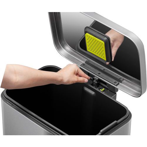- Fonction de maintien en position ouverte du couvercle pour faciliter le nettoyage de la poubelle ou le changement de sac.