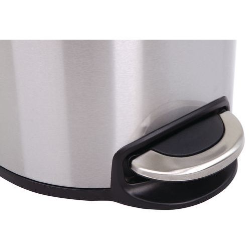 Poubelle à pédale simple avec pédale élégante, couvercle à fermeture silencieuse et liner en plastique.