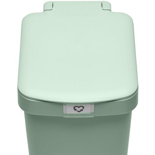 Poubelle circulaire à pédale en matière synthétique, composée à 91% de matériaux recyclés et recyclable à 99% après usage. Grâce à la conception étroite, cette poubelle est peu encombrante et pet être serrée étroitement contre le mur. Equipeé d'un couvercle à fermeture silencieuse, d'un porteétiquette pour indiquer le flux de déchets et d'un espace de rangement pratique pour les sacs poubelle. Couvercle à large bord qui maintient le sac hors de vue.