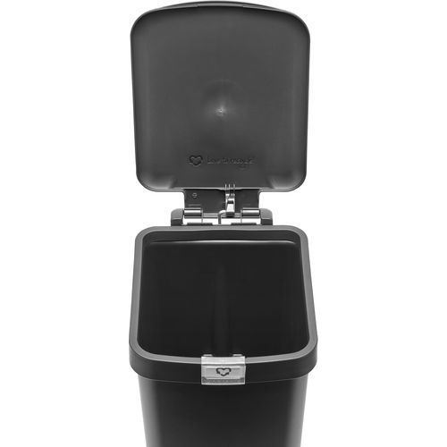 Poubelle circulaire à pédale en matière synthétique, composée à 91% de matériaux recyclés et recyclable à 99% après usage. Grâce à la conception étroite, cette poubelle est peu encombrante et pet être serrée étroitement contre le mur. Equipeé d'un couvercle à fermeture silencieuse, d'un porteétiquette pour indiquer le flux de déchets et d'un espace de rangement pratique pour les sacs poubelle. Couvercle à large bord qui maintient le sac hors de vue.