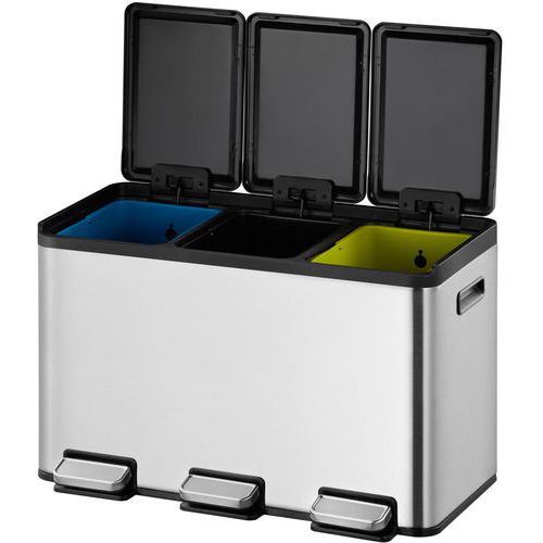 Poubelle à pédale tri sélectif Essential splitted 3x10L, Capacité: 30 L, Ouverture: À pédale, Matériau: Inox