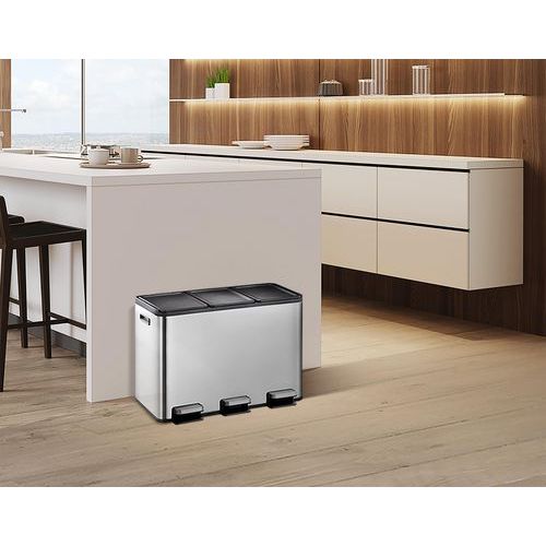 Les trois pédales donnent un accès séparé aux liners en matière synthétique (10+10+10L) pour le tri sélectif des déchets.