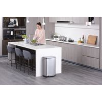 Cette poubelle en Inox brossé a une finition anti-traces de doigts et un revêtement anti-bactérien nano argent.