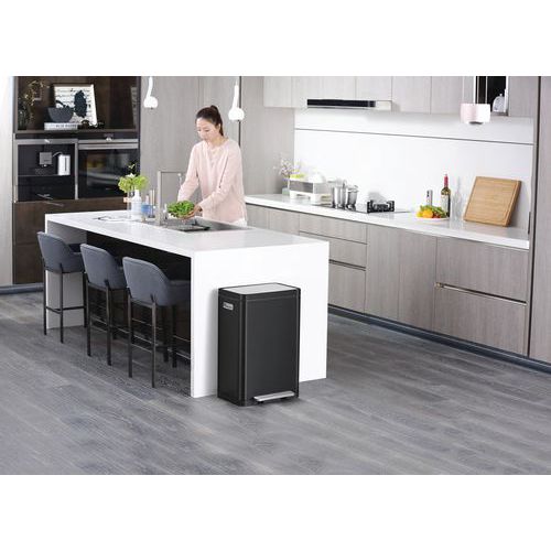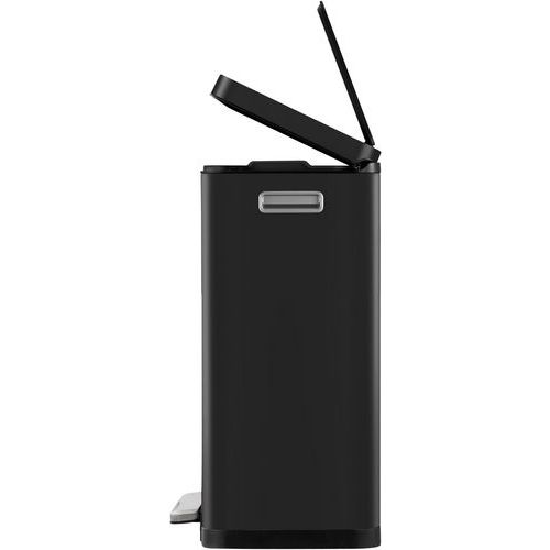 Poubelle élégante rectangulaire équipée d'une pédale extra-large, de 2 liners en matière synthétique (2x20L), d'un couvercle à fermeture silencieuse et de la fonction 'stay-open'.