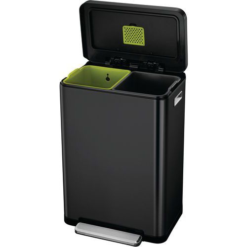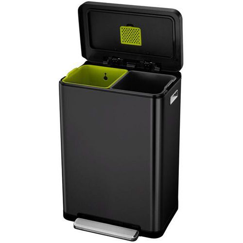 Poubelle à pédale X-Cube tri sélectif 20+20L, EKO, Capacité: 40 L, Matériau: Inox, Coloris: Noir