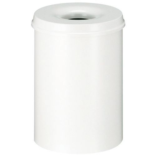 Poubelle métal équipée d’un étouffoir. Le couvercle redirige vers le bas les gaz générés et le feu s’étouffe immédiatement. Aucun risque de voir les flammes se propager. Nettoyer la corbeille à l’aide d’un chiffon humide et utiliser éventuellement un nettoyant ménager. Garantie client : 3 ans