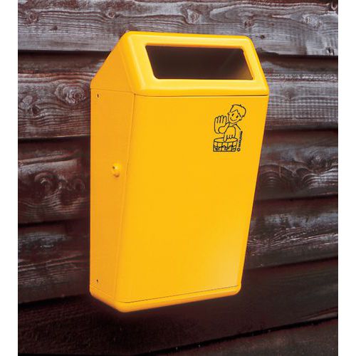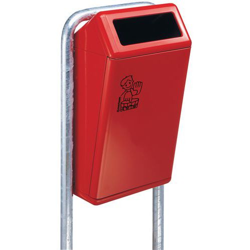 Robuste et fonctionnel. Poubelle très résistante en métal anti-feu. La large ouverture invite à jeter les déchets et à garder les rues propres. Bac intérieur amovible pour faciliter le vidage. Porte avec fermeture. Peut être fixée au mur ou sur piquet. Garantie client : 3 ans