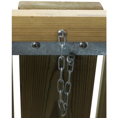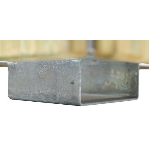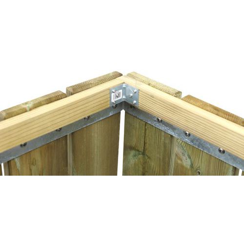 Lames 18 x 2,8 cm Ossature acier galvanisé. Livrée montée. Bac en option. A fixer sur sol dur par scellement (4 goujons non fournis). Livraison avec hayon.