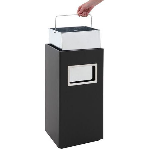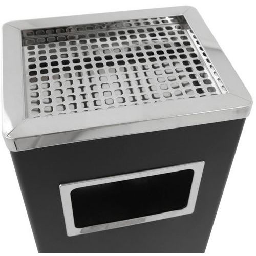 | Intitulé du produit | Poubelle-cendrier 14,5L, Cendrier capacité: 2 L, Poubelle capacité: 14.5 L, Coloris: Noir, Matériaux: Inox |