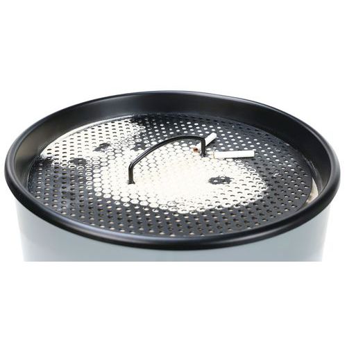 Poubelle-cendrier anti-feu ronde avec liner en métal. Équipée d'un tamis et d'une plaque noire. Grille qui éteindra le mégot facilement. Poignée sur le haut pour facilité la vidange. Garantie client : 10 ans