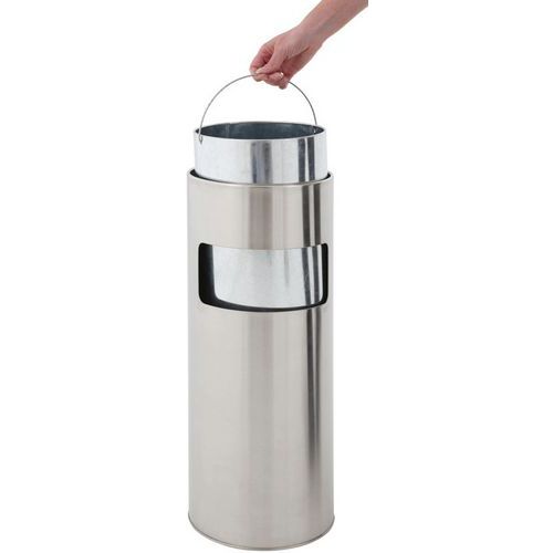 | Intitulé du produit | Poubelle-cendrier ronde, Cendrier capacité: 4 L, Poubelle capacité: 12.5 L, Coloris: Gris, Matériaux: Inox |