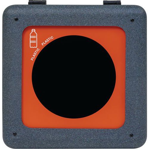 Cette unité de tri sélectif est équipée d'un couvercle avec une plaque en aluminium de couleur à symbole et texte pour indiquer le flux de déchets.
