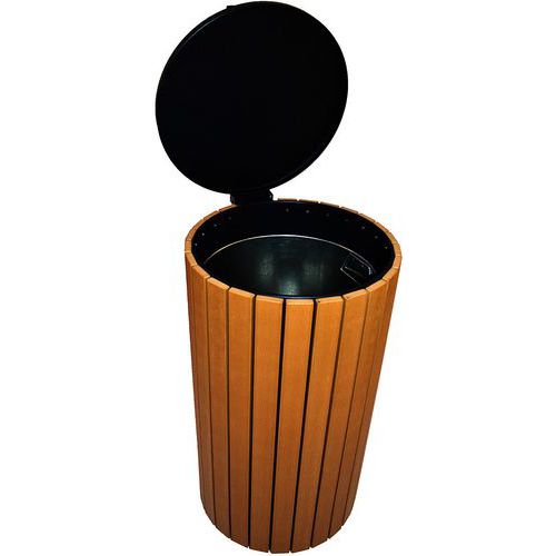 | Intitulé du produit | Poubelle d'extérieur 90 L, Look Bois, Capacité: 90 L, Matériau: Plastique, Corps coloris: Marron clair |