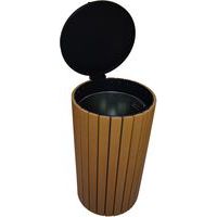 Poubelle robuste et grande capacité, équipée d'un couvercle et d'un liner en acier galvanisé.