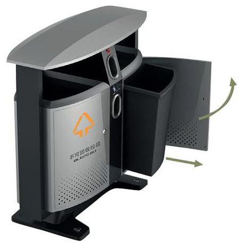 Intitulé du produit Poubelle d'extérieur Design piles et tri sélectif, Capacité: 78 L, Ouverture: À fente, Matériau: Métal