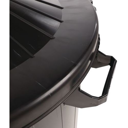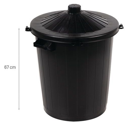 | Intitulé du produit | Poubelle de rue noire, Capacité: 80 L, Ouverture: Frontale, Matériau: Polyéthylène haute densité |