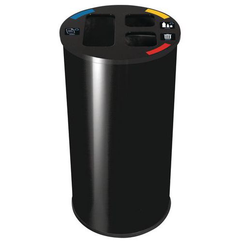 Poubelle de tri 3 flux, Capacité: 60 L, Ouverture: À pédale, Matériau: Acier