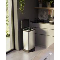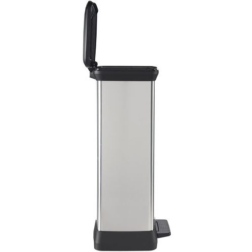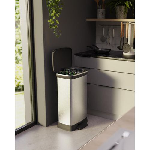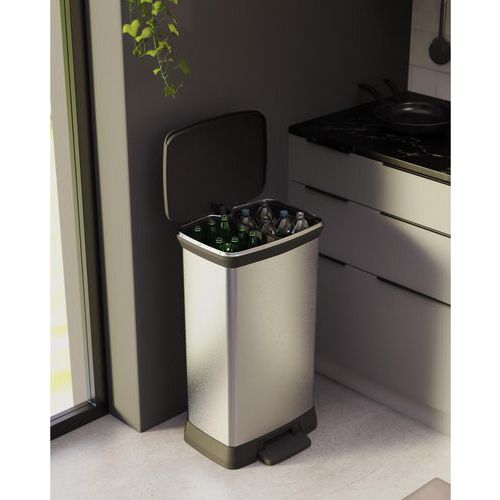 Poubelle à pédale rectangulaire en matière synthétique à l'aspect métal Fabriquée à partir de 70% de matériaux recyclés Equipée de deux seaux intérieur (2x23L) en plastique Facile à nettoyer.