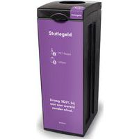 - Convient pour 4 flux de déchets (4x 38 litres), dont 2 avec des ouvertures d’insertion rondes (plastique, papier), 1 pour les déchets résiduels avec un couvercle fermé, et 1 pour les gobelets.