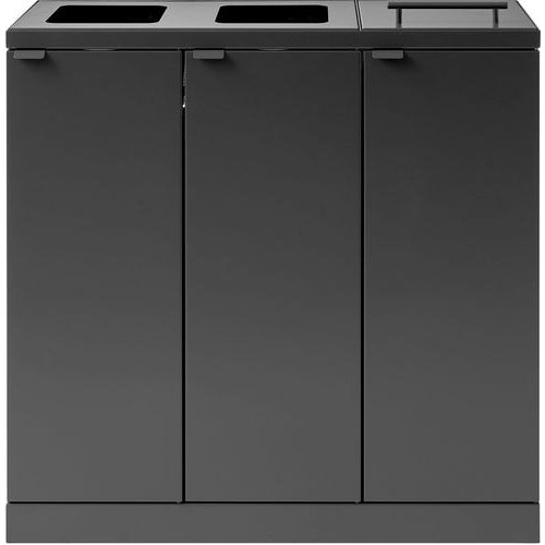 Poubelle élégante et fonctionnelle pour 3 flux de déchets en acier thermolaqué haute qualité.