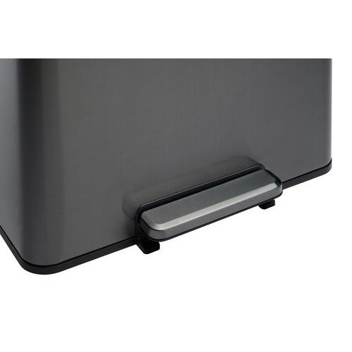 - La pédale en acier inoxydable couleur charbon résiste à une utilisation quotidienne et évite de toucher le couvercle pour garder les mains propres.