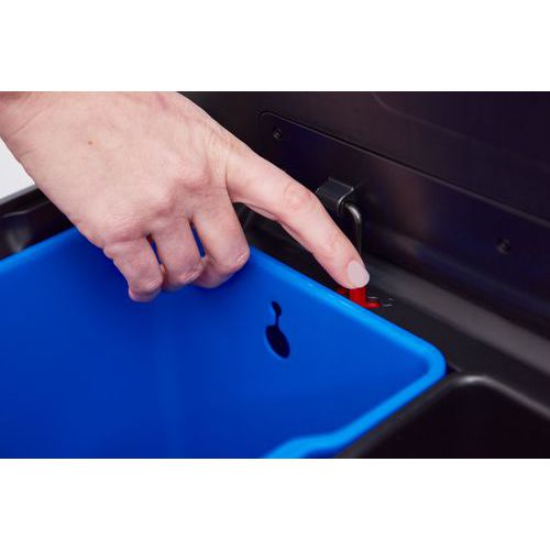 - Le verrouillage du couvercle en position ouverte permet de garder la poubelle ouverte pour les tâches prolongées.