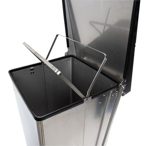 Un support de sac est intégré à la poubelle en acier inoxydable.