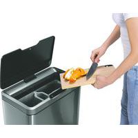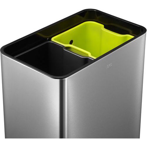 Poubelle élégante pour le tri sélectif en Inox brossé avec finition anti-traces de doigts et 2 liners en plastique (2 x 20L).