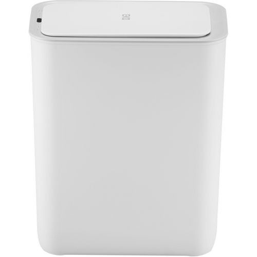 Poubelle rectangulaire tendance en matière synthétique, équipée d'un capteur et touche switch pour ouvrir le couvercle avec un simple geste.
