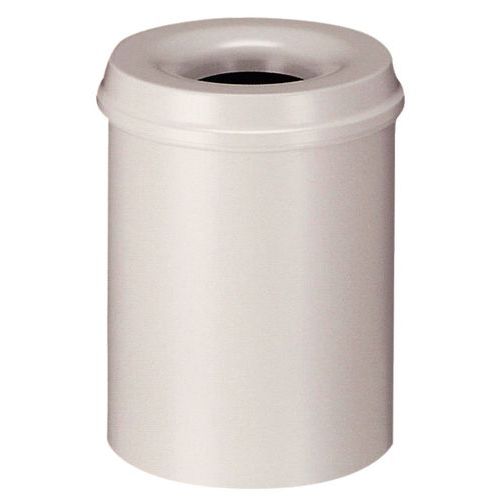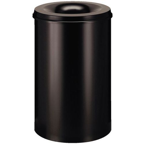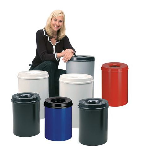 Poubelle métal équipée d’un étouffoir. Aucun risque de voir les flammes se propager.