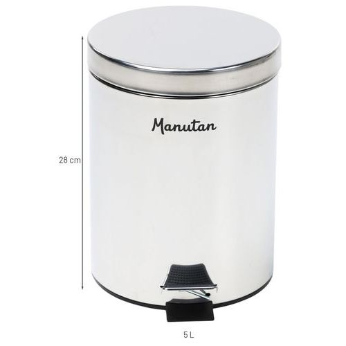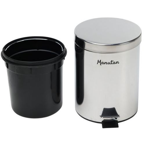 Poubelle sanitaire Inox à pédale Manutan, Capacité: 5 L, Ouverture: À pédale, Matériau: Métal