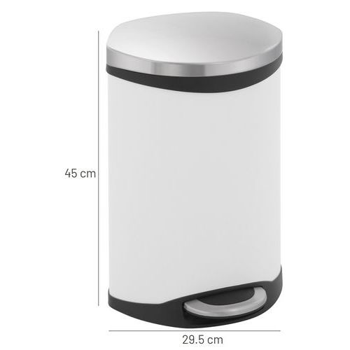 Design coquille élégant pour une intégration discrète dans toutes les pièces. Mécanisme soft closing assurant une fermeture silencieuse et sans effort. Liner en plastique amovible pour un entretien facile et une hygiène optimale. Finition anti-traces de doigts pour un aspect propre durablement. Ouverture à pédale pratique permettant une utilisation mains libres.